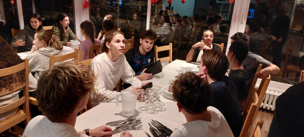 Les élèves sont bien arrivés dans les Alpes depuis 19h00 ce lundi 13 octobre 2025 et ont bien apprécié le premier dîner au gîte.