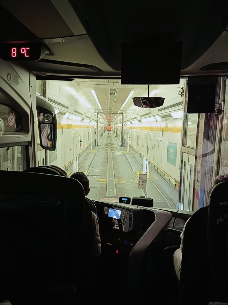 Nous sommes partis à 22h30 dimanche 8 mars. Après une halte près de Rouen, nous embarquons dans l’eurostar.