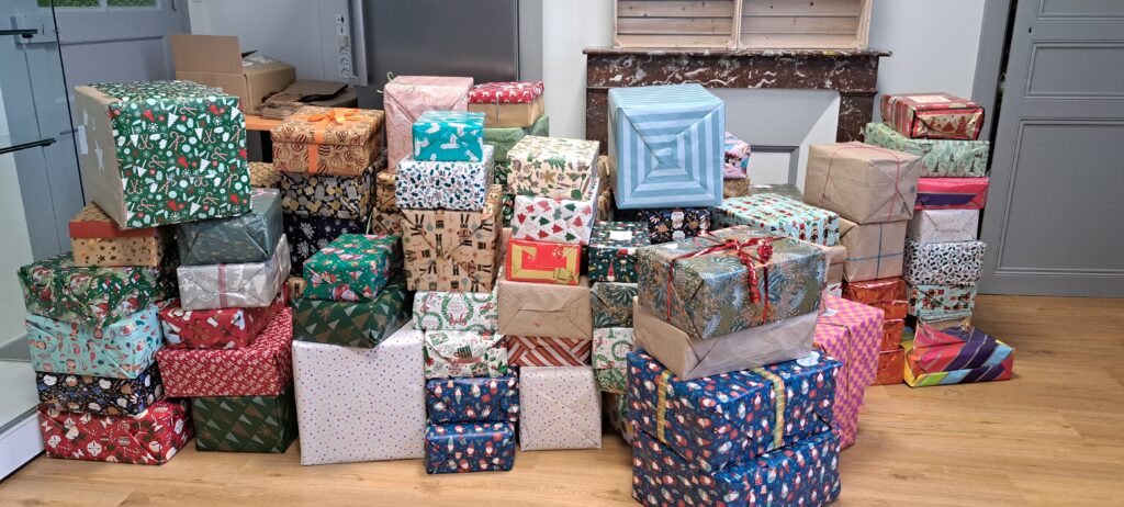 Grâce à vos dons ( vêtements chauds, produits d’hygiène, aliments sucrés, livres ou jeux,…) les élèves du lycée ont pu confectionner et donc offrir 118 boîtes ! La joie s’est ressentie autant du côté de ceux qui ont donné les boîtes que de ceux qui les ont reçues !