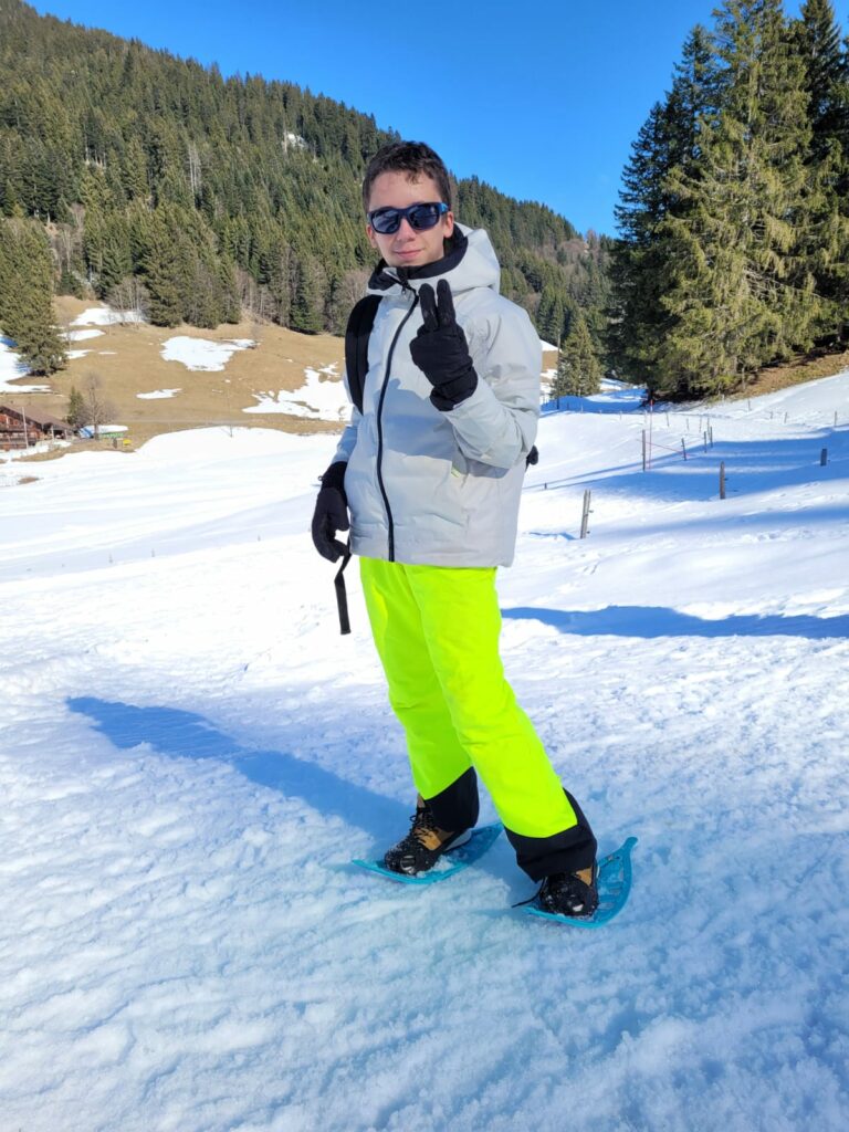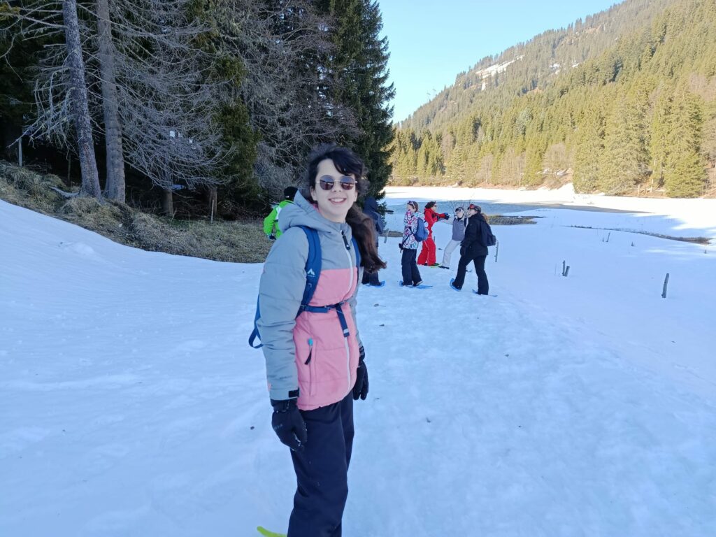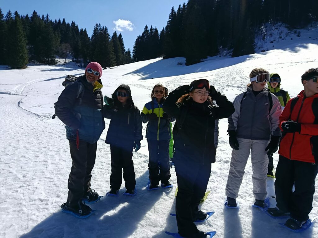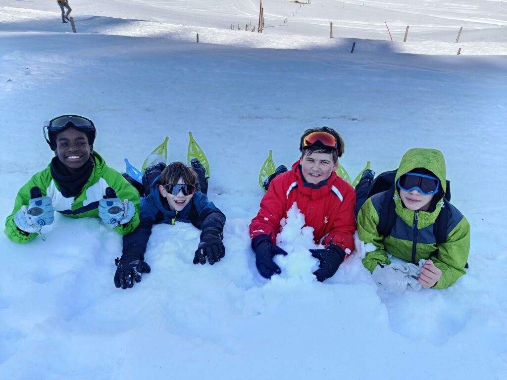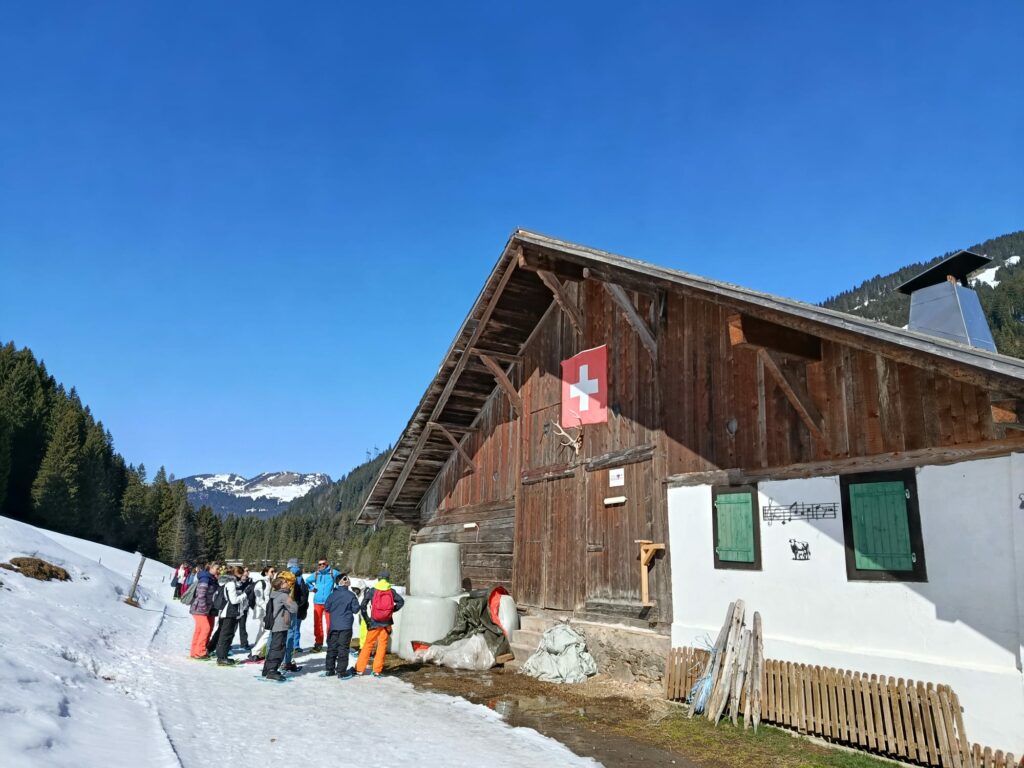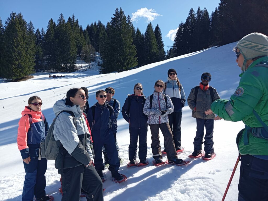 Cet après midi, nous avons troqué les chaussures de ski pour des chaussures de randonnée. La sortie raquettes, en Suisse, accompagnée par des guides de montagne a permis d’appréhender le milieu montagnard.