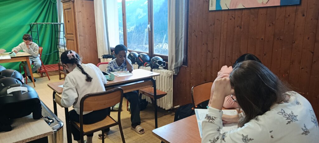 Après le goûter, les élèves ont répondu au questionnaire sur les différentes connaissances apprises depuis le début du séjour.